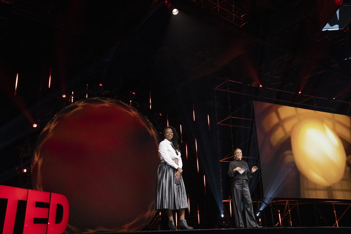 TED’s Monique Ruff-Bell (left) and Helen Walters host Session 1 of TEDNext 2025 on November 9, 2025, in Atlanta, GA. (Photo: Erin Lubin / TED)
